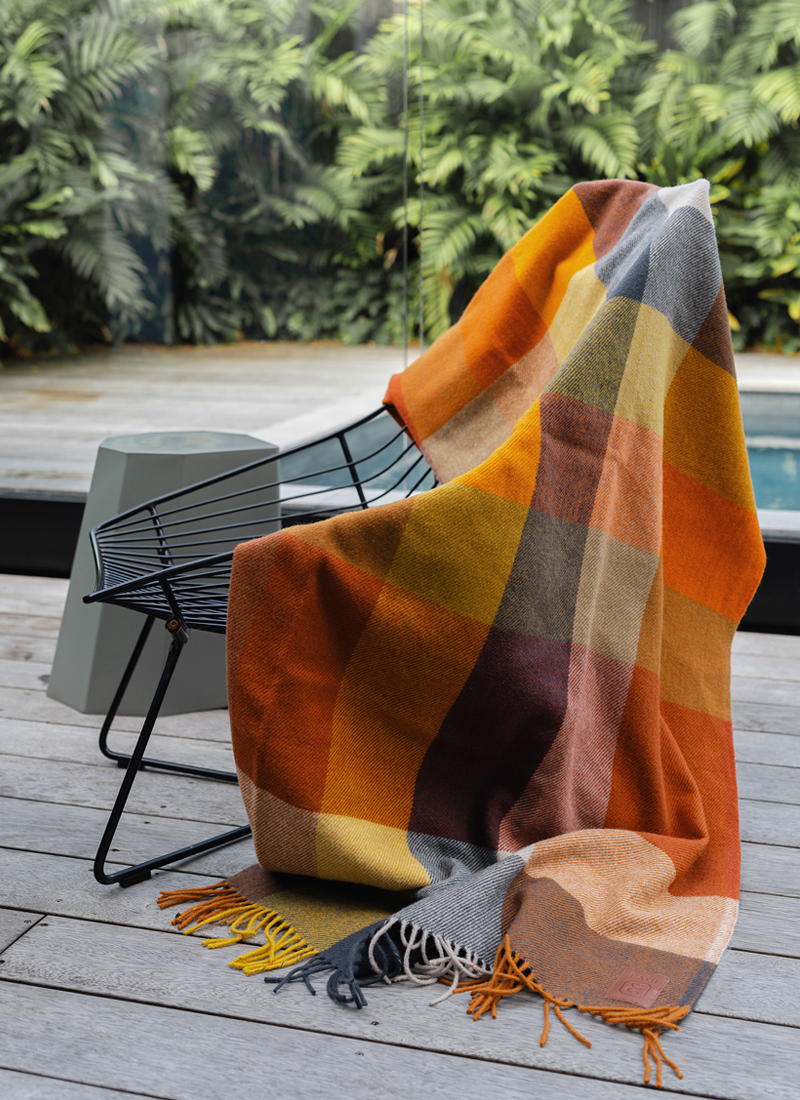 Heritage Lambswool Throw - Maple Check